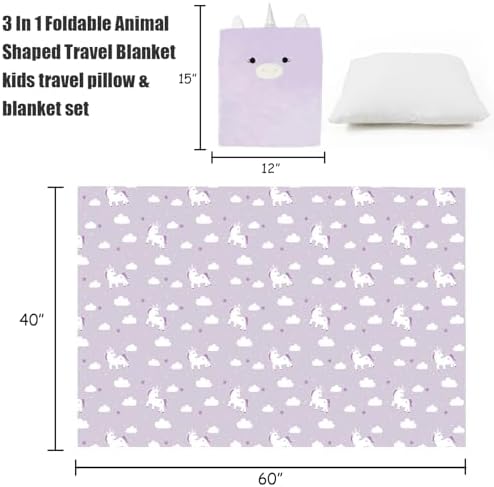 UNICORN PILLOW BLANKET SIZE – The cute pillow measures 15x12inches, providing a great size for kids to hug or use as a backrest. The unicorn travel blanket measure about 60x40inches, offers ample coverage to keep your child warm.You can place the pillow blanket set on the bed, sofa, and anywhere you like