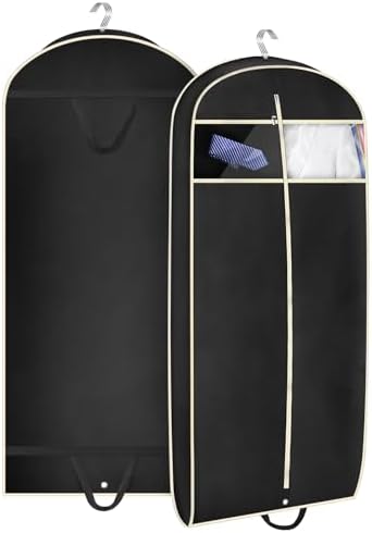 【Great for Travel and Closet Storage】Heavy-duty fabric carry handles and a sturdy metal grommet for folding during travel. A hole in the top of men suit cover for you to put 3-4 coat hangers through and hang it up in the closet;