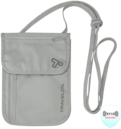 Protect your identity and your valuables with the Travelon Safe ID(r) Undergarment Neck Pouch. The undergarment neck pouch has RFID protection to prevent card readers from reading RFID enabled credit, debit cards and passports. The 5 pocket design keeps you cash, cards, passport and other valuables safely and securely tucked against your body. Wear it under or over your clothes. The back panel is a breathable air mesh for added comfort.